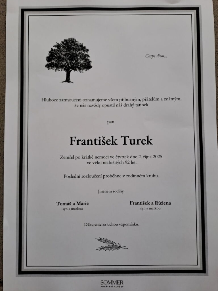 Zemřel František Turek Zveřejněno v 8. října 20258. října 2025 od Jaroslav Říha Bohužel si už s Frantou Turkem nezahrajeme. Vždy byl plný optimismu a dobré nálady.
